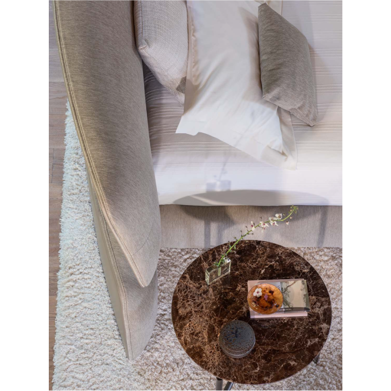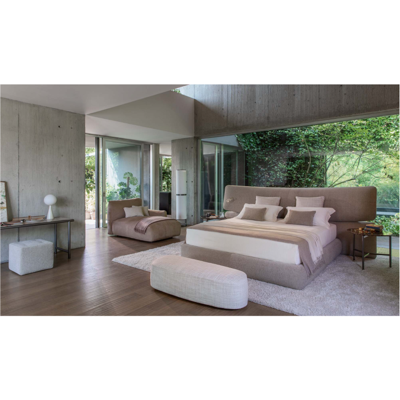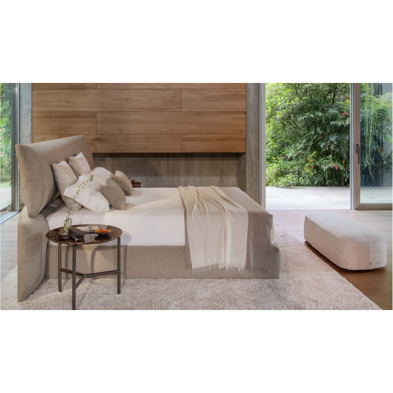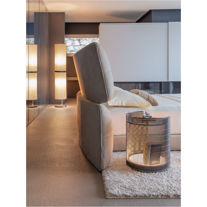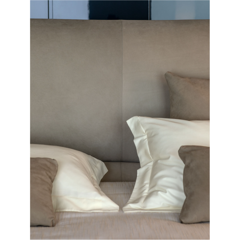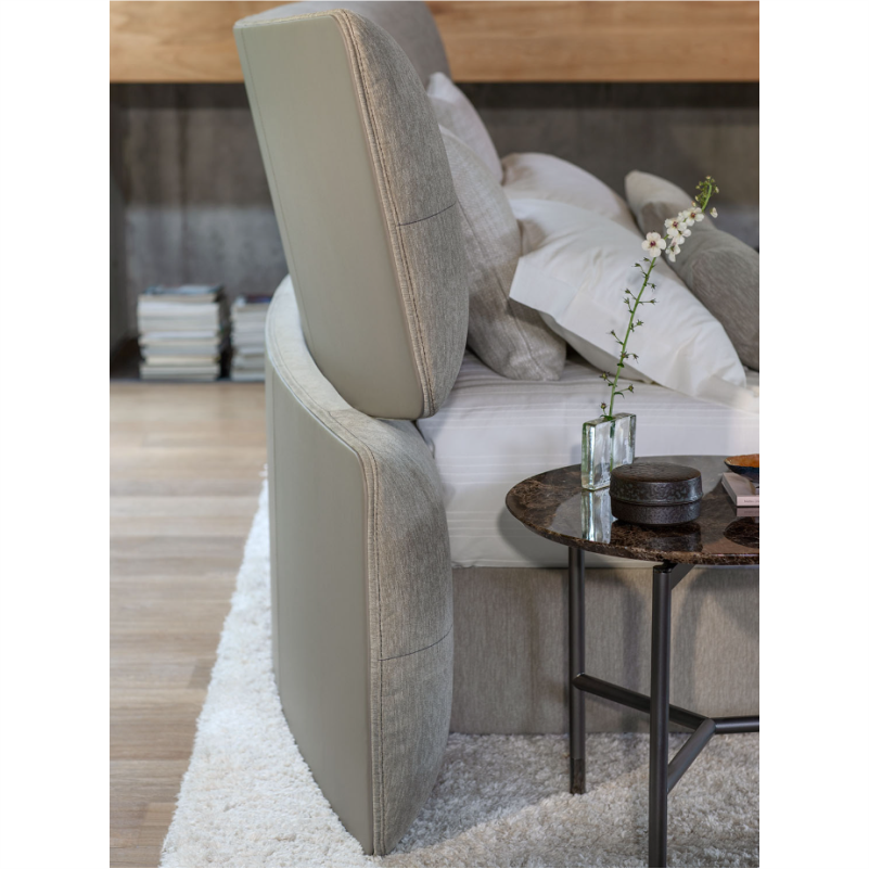 Flou „Yuna” išsiskiria dosniai paminkštintu, iš dviejų lenktų horizontalių plokštumų sudarytu galvūgaliu, kuris kuria elegantišką ir jaukią kompoziciją. Lovos siluetas lengvas, bet kartu vizualiai ryškus – sukurtas tapti pagrindiniu miegamojo akcentu.