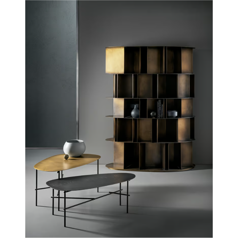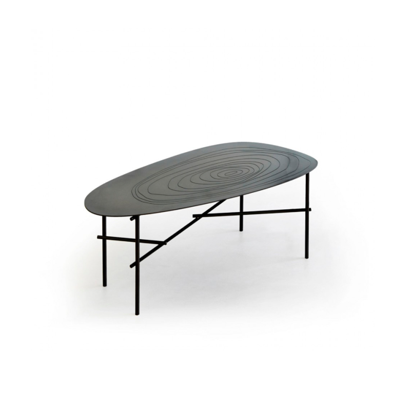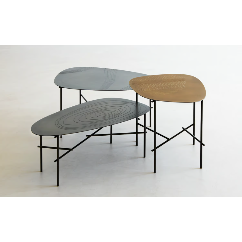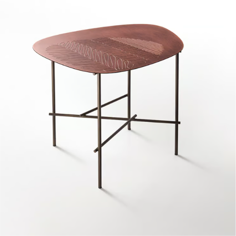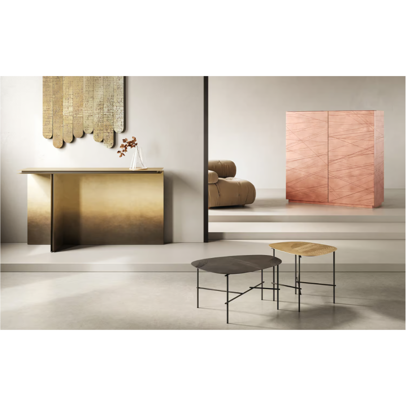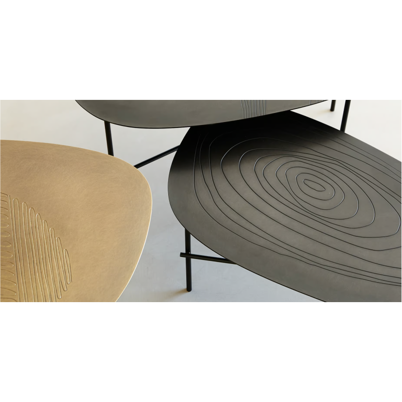 „Syro” kavos staliukas – tai minimalistinis dizaino objektas, kuriame dera grakšti forma ir išskirtinis metalo paviršius. Jo subtilus siluetas suteikia interjerui lengvumo ir rafinuotumo.