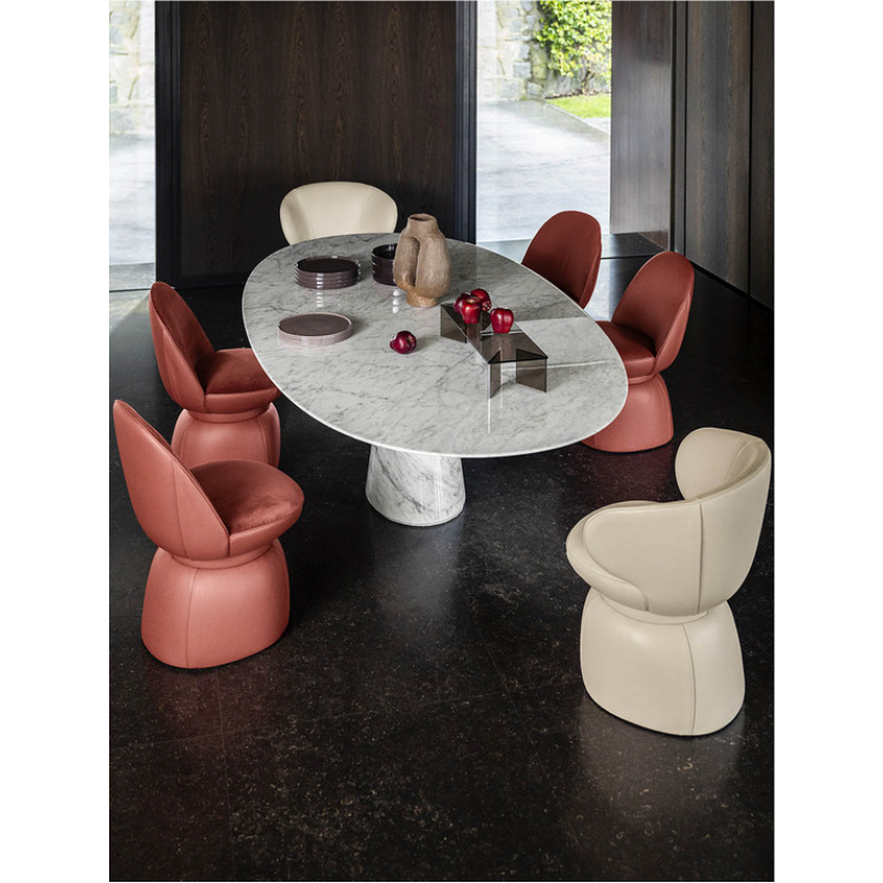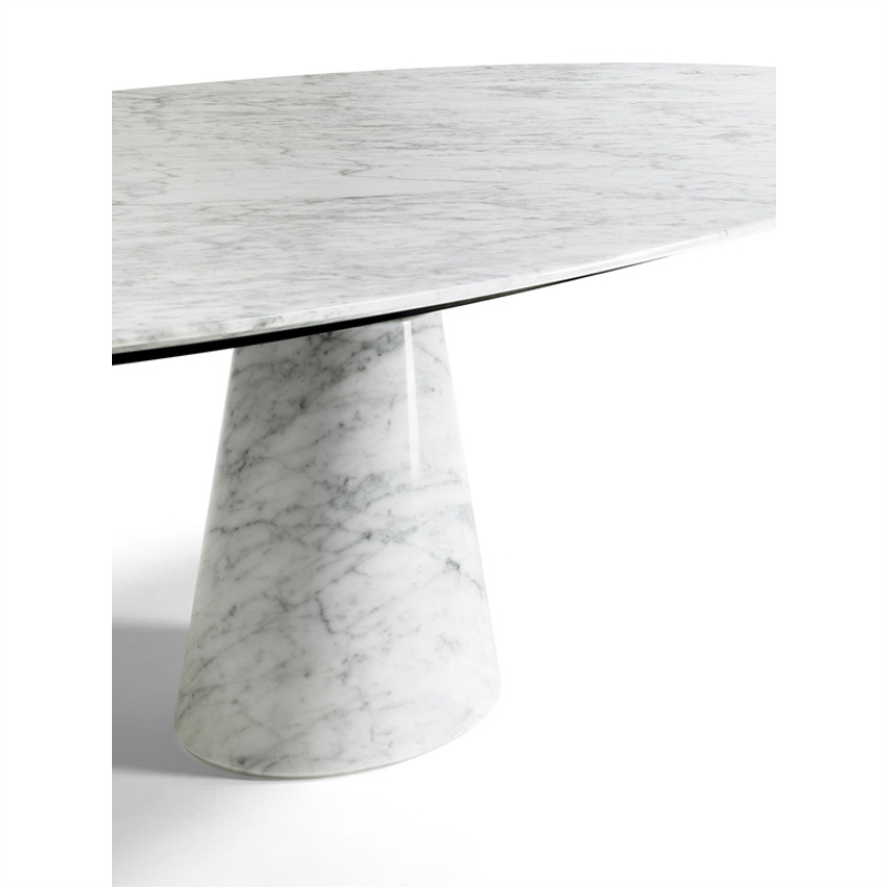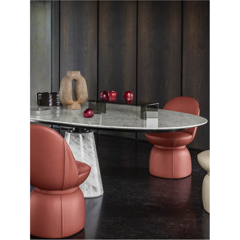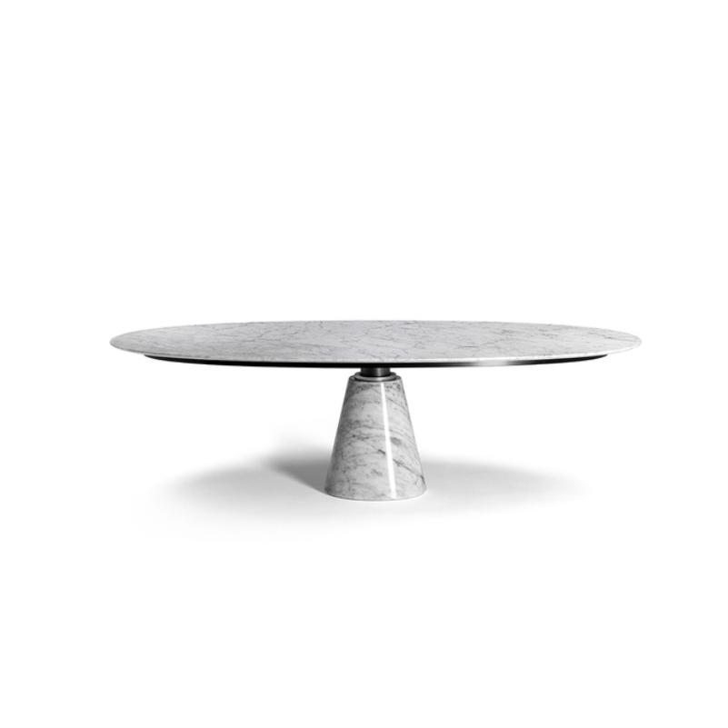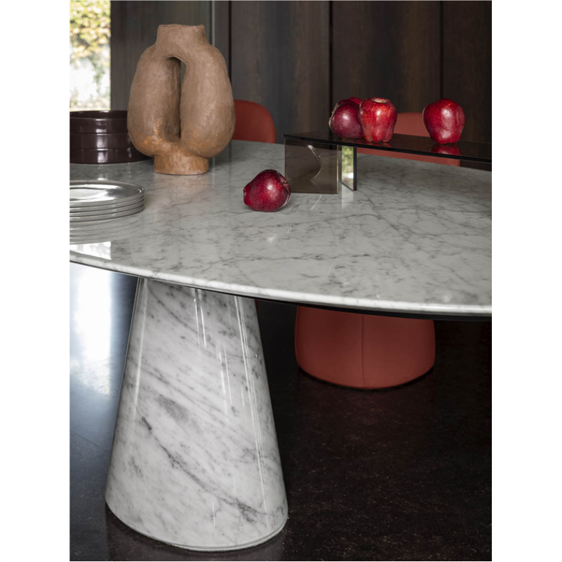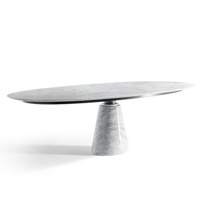 „Mesa Ellipse“ – tai elegantiškas stalas su subtiliai išlenktu marmuriniu paviršiumi ir masyvia kolonos formos baze. Kiekvienas modelis unikalus dėl natūralių marmuro gyslų ir išskirtinės meistrystės.